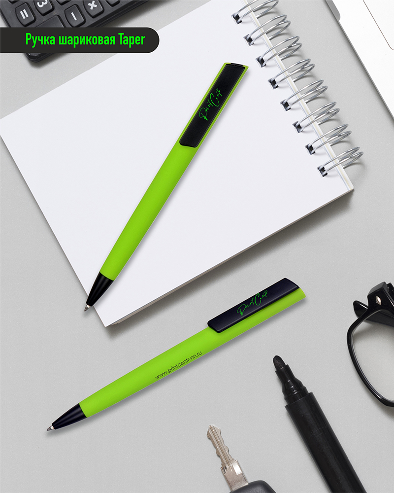 «Taper» - это шариковая пластиковая ручка с необычным слайдером. Приятная поверхность soft-touch делает письмо более комфортным. Для персонализации можно сделать нанесение логотипа с использованием тампопечати или УФ-печати. Тампопечать (1 цвет (цветные изделия)) на данный товар осуществляется бесплатно. Оплачивается только настройка оборудования в размере 3007.69 рублей на весь тираж.
